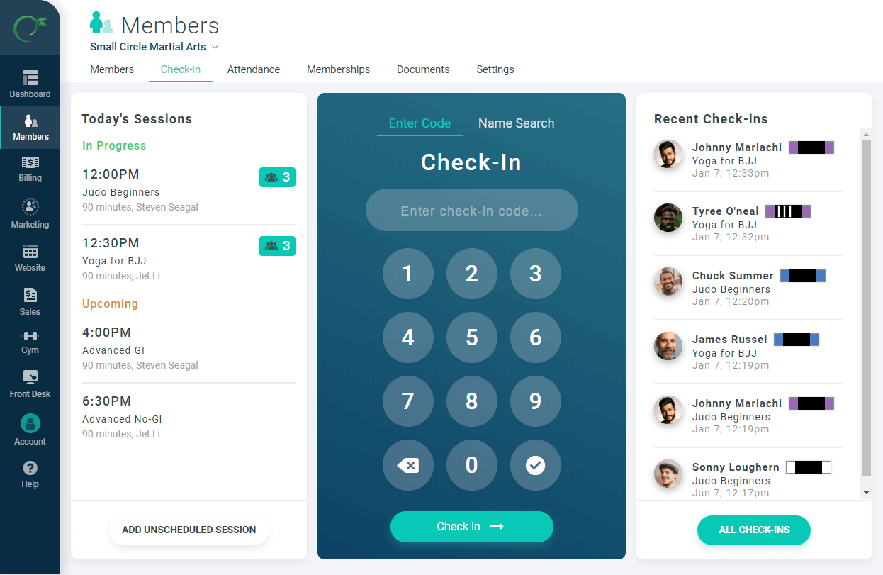 try it for freeMembers can check in on any device via a numeric code, name search, bar code scanner, or QR code. No staff required.