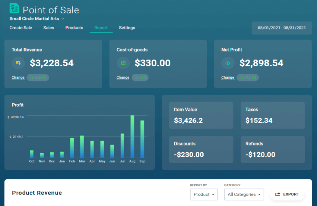 Generate point-of-sale and membership payments, project revenue for the coming year, and review month-over-month member and revenue growth and churn in your gym.