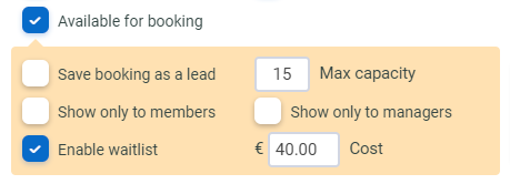 - Enable waitlist for fully booked sessions: Allow members to enter a waiting list for fully booked sessions (see below).