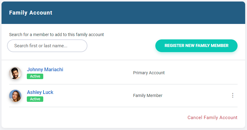 If the member is not yet a part of a family account, you'll be given the option of creating a new family account for that member, or search for existing family account to add them to.