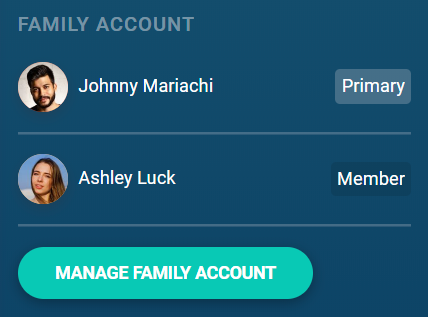You can manage a member's family account from the bottom of the left sidebar of their profile. Clicking on the "Manage Family Account" button will take you to the family management screen for that member.